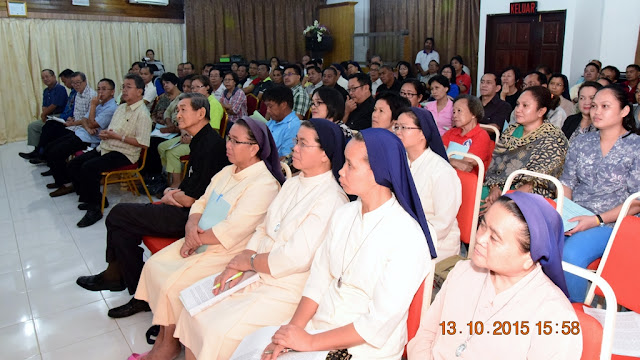 Telupid : The 2-day event of the 8th Anniversary of the Diocese of Sandakan kicked off with a formation session for some 110 people, clergy, religious and lay leaders from across the diocese facilitated by the Apostolic Nuncio to Malaysia, Archbishop Joseph Marino Tuesday, 13th October 2015. The 2-hour session was held at the Sabah Forestry Institute, Telupid from 3.00 pm - 5.00 pm.